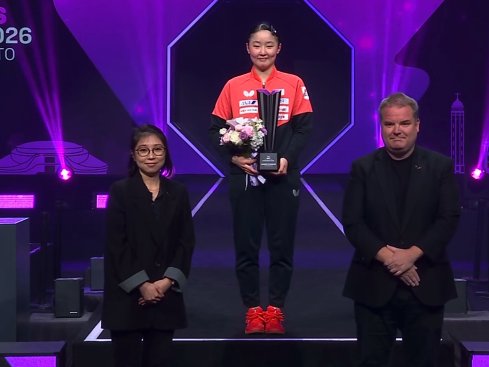 女单颁奖!蒯曼夺亚军神情淡定,张本美和拿奖杯时抢戏亮了!