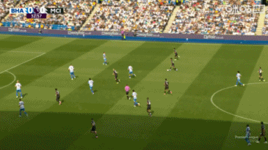 直播吧08月31日讯 曼城vs布莱顿第34分钟,马尔穆什闪转腾挪送出助攻,哈兰德前插破门,曼城1-0领先!