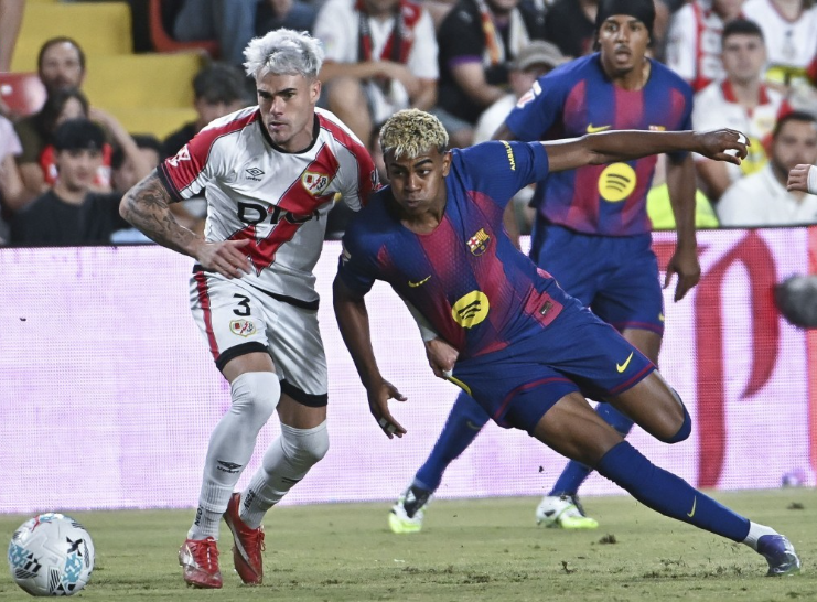 此役面对巴列卡诺,巴萨的表现依旧难言出色,虽然亚马尔的点射破门,帮助巴萨早早取得了比分上的领先,但是后防孱弱给了对手太多轻松打反击的机会,尽管新门将霍安加西亚表现神勇,多次贡献神扑化解了巴列卡诺极具威胁的打门,但还是没有能够零封对手,最终双方1-1握手言和,由于巴萨本轮没有获胜,皇马坐稳了领头羊的宝座。