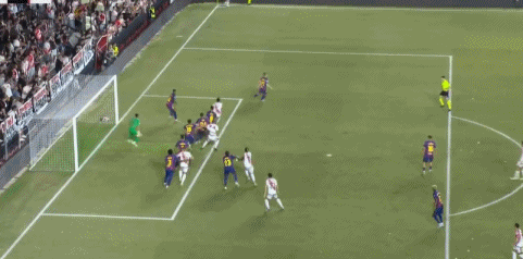第89分钟,拉蒂乌右路突破,小角度劲射势大力沉,又被霍安-加西亚扑出,随后卡梅略补射踢呲。本场比赛霍安-加西亚完成4次关键扑救,如果不是他过于神勇,巴萨恐怕被打爆。