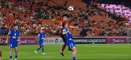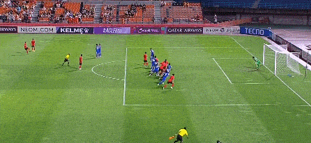 第33分钟,江原FC主罚左肋任意球到后点,赵炫太飞身铲射击中边网。