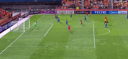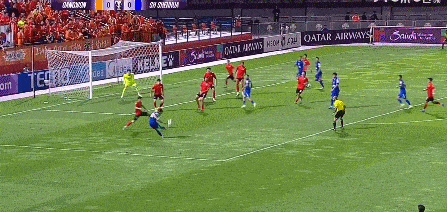 第74分钟,江原禁区右侧传中制造危险,具本哲的头球攻门偏出球门。