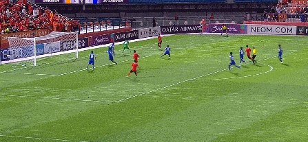 第10分钟,江原FC主罚前场左侧任意球到小禁区前,维托尔-加布里埃尔门前踹射破门。不过,边裁举旗示意越位在先,进球无效。