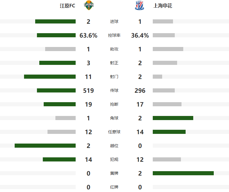 9分钟2球!第63分钟,金大宇禁区右侧底线附近倒三角回传,中路跟进的金大元劲射被申花球员挡了一下,小禁区线附近的具本哲停球后面对门将倒地铲射得手,江原2-1反超比分。