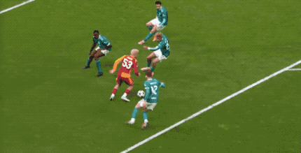 第48分钟,弗林蓬极限下底传中,埃基蒂克脚后跟射门,加拉塔萨雷门将及时反应,将球挡出。