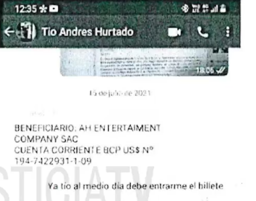 而据秘鲁媒体《infobae》的最新消息显示,萧涛涛目前已经转为检方的“污点证人”,提交出证据来指认胡尔塔多的违法行为。根据萧涛涛提供的聊天信息截图,胡尔塔多确实曾发给他一个银行账户号码,要他把“改国籍”的钱打到这个账户上。