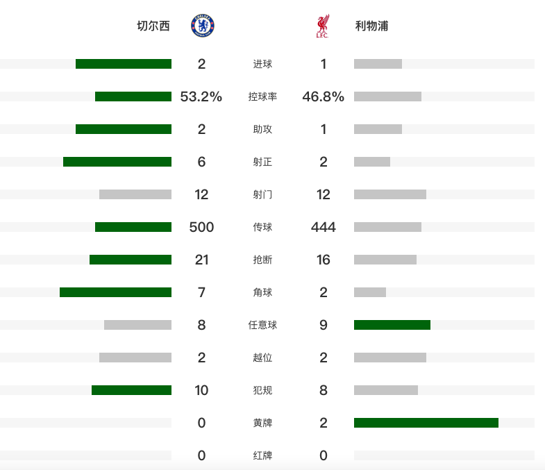 蓝军迎来最近4轮联赛的首场胜利,利物浦则是遭遇联赛2连败,各项赛事3连败。本场过后,利物浦丢掉榜首,阿森纳登顶。