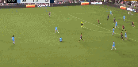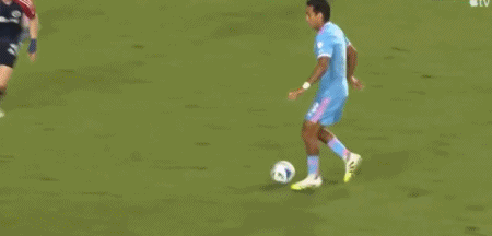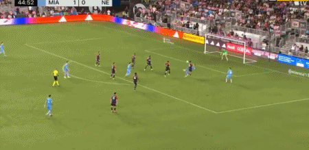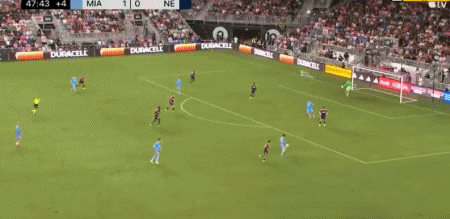 第45+3分钟,梅西禁区内突破横传,阿尔巴踉跄射门得分,迈阿密国际2-0