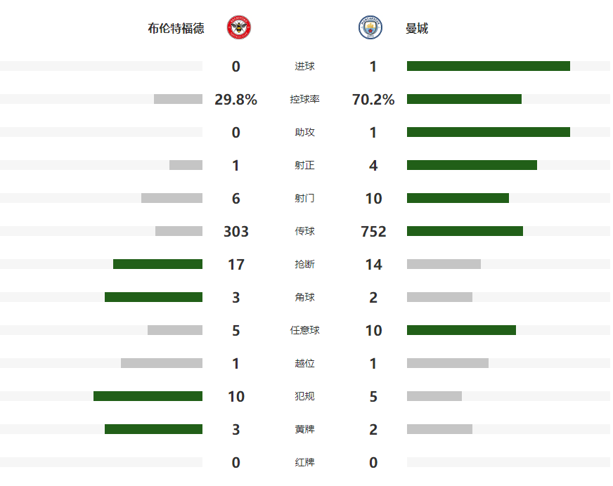 本场比赛两支球队都没有创造出太多有威胁的进攻机会,哈兰德上半场为球队打入全场唯一进球,多纳鲁马则在下半场扑出对手单刀,最终帮助曼城在客场1-0击败了小蜜蜂布伦特福德。