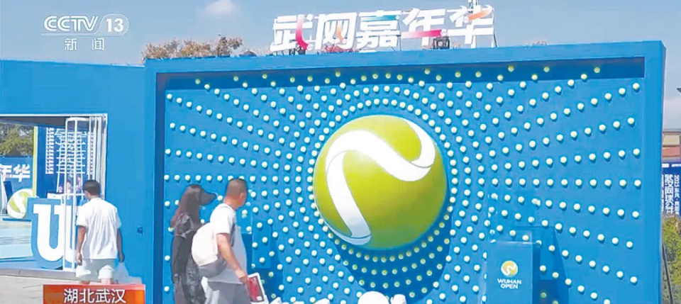 在武汉光谷国际网球中心,2025武汉网球公开赛正在举行,顶尖球员同台竞技,现场观众热情高涨。场外,借助赛事“东风”,总面积6000平方米的体育消费主题乐园——武网嘉年华,现场设立了体育商品售卖、运动体验、特色美食等业态,吸引不少市民游客前来购买好物、品尝美食,体验运动的乐趣。
