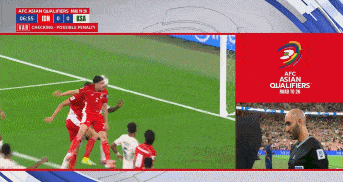 第87分钟,沙特球员防守中倒地,然后手球。裁判再次给了印尼点球。