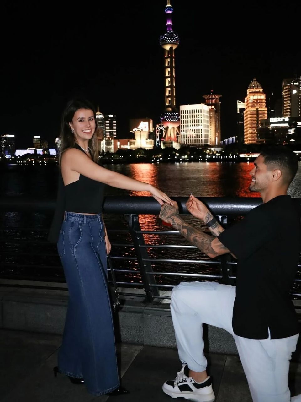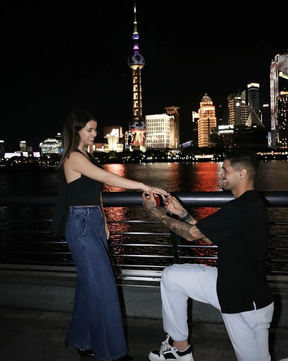 西海岸外援里切利在上海滩求婚成功,未婚妻太美了