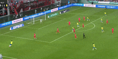 第41分钟,卡塞米罗禁区里回做,罗德里戈杂耍过人,调整到右脚射门,韩国队防只能目送皮球入网。2-0。