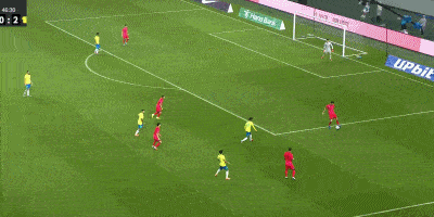 第77分钟,巴西后场打反击,库尼亚大师级直塞球,绕过了韩国队的整条防线,维尼修斯带球单刀突进。到了禁区里,维尼修斯戏耍韩国后卫,随后射门得分,5-0!
