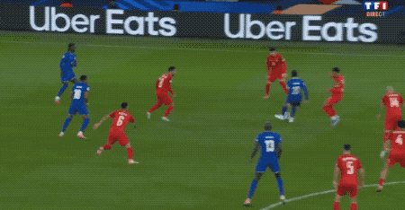 上半场比赛,法国队狂轰滥炸,完成15次射门,但直到半场补时阶段,才由姆巴佩打破僵局。