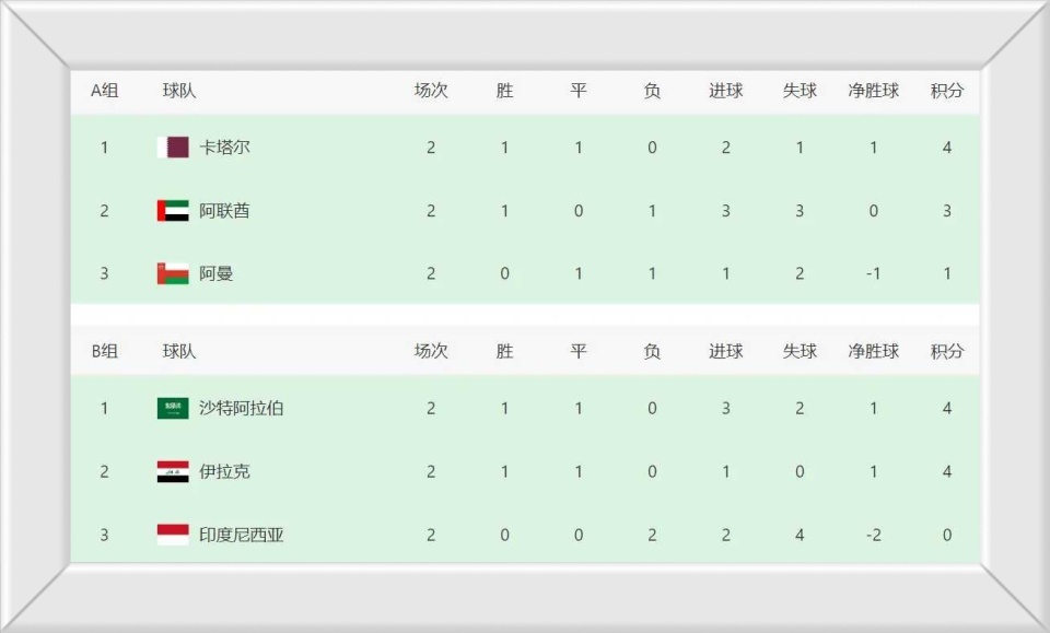 而伊拉克队首战则是1-0战胜印尼队,两队“联手”送印尼队提前出局。