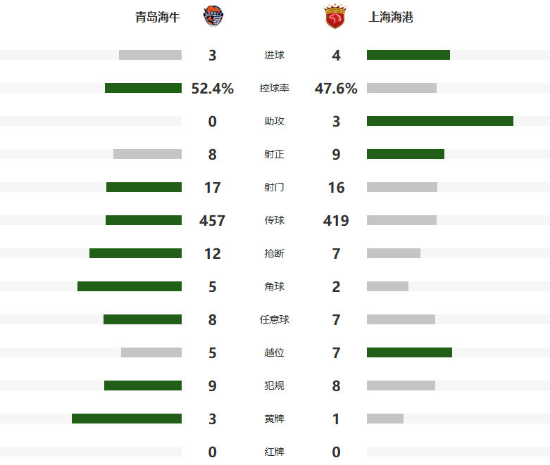 北京时间10月17日18点,中超第27轮焦点战,为保级而战的青岛海牛主场对阵争冠球队上海海港。兰克尔泽闪击,但加布里埃尔很快扳平,随后莱昂纳多破门反超,兰克尔泽双响,莱昂纳多同样双响将比分超出,李新翔和宋龙杰比赛结束前连续进球。最终,海港4-3逆转取得4连胜,积60分继续领跑,而海牛7轮不胜后积18分暂列倒数第二。