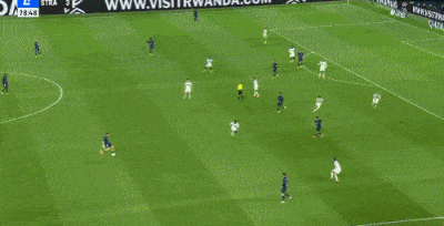 上半场结束前,巴黎被反超了,他们后场传球失误。