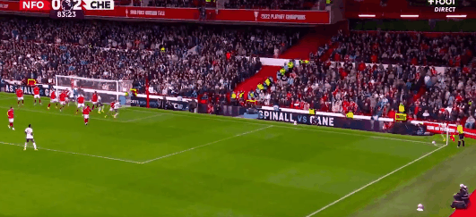 第52分钟,切尔西前场获得了一个位置非常好的定位球机会,内托直接起脚打门,再次撕开诺丁汉森林的球门,蓝军把领先的优势扩大到了2球。