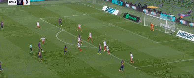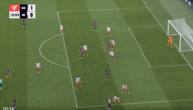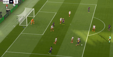 第92分钟,德容传中,客串中锋的巴萨中卫阿劳霍前点扫射破门,2-1。