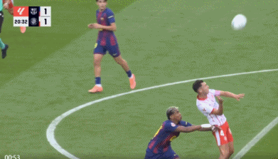 第5分钟,亚马尔右翼人球分过,突入禁区小角度斜射偏出。