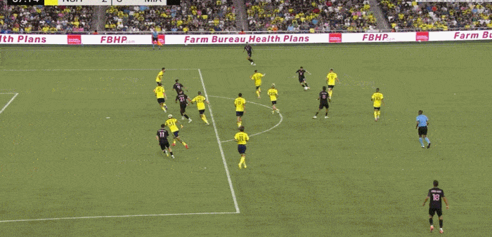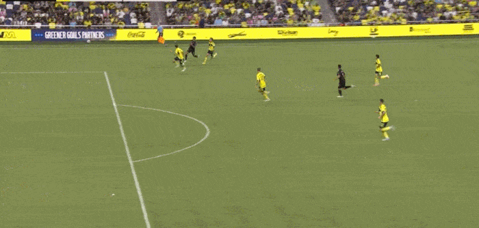 伤停补时阶段,梅西本可以上演大四喜,但他无私的放弃了。迈阿密右路推进,传球到中路,梅西接应。