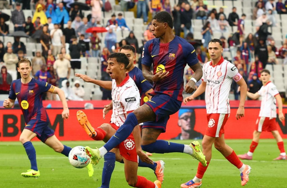 第20分钟,巴萨丢球了!维特塞尔在禁区内倒钩射门,皮球弹地后钻入球门远角。门将把身体拉到极限都没能碰到皮球。双方回到同一起跑线。4分钟后,巴萨差一点再次丢球。波图的单刀射门击中了立柱,非常可惜。随后,德容的抽射被门将神扑化解。第32分钟,拉什福德任意球直接射门,皮球击中门框弹出。7分钟后,希尔浪费单刀机会,踢高了。半场结束,巴萨1-1赫罗纳。