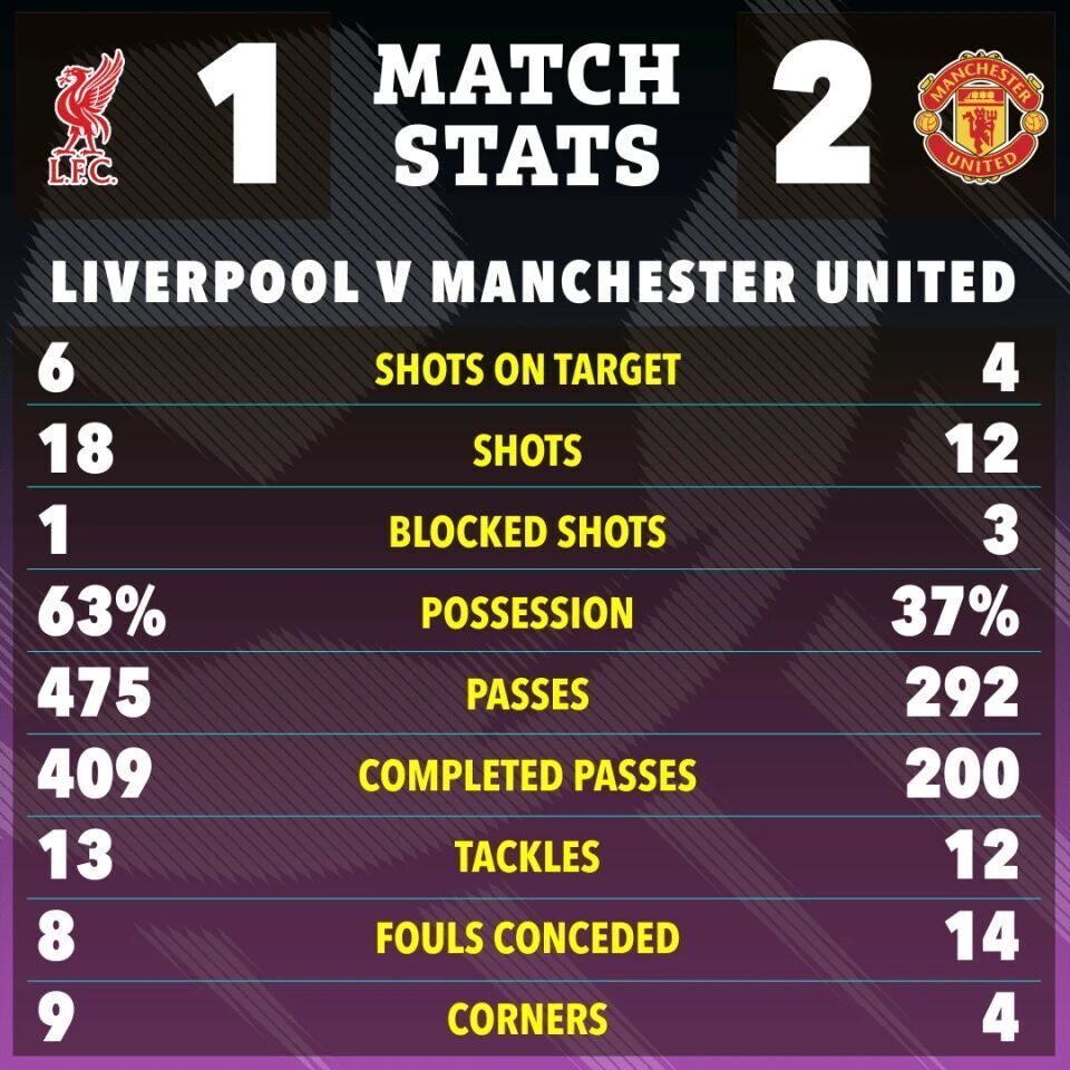 这是曼联今年3月以来首次在英超客场赢球,亦是2016年1月之后首次在客场战胜利物浦,终结了在安菲尔德球场连续9场联赛不胜(5平4负)的尴尬纪录。