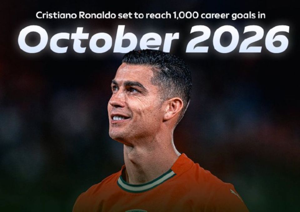 预计在2026年10月份,C罗可以打进个人的第1000球,从而创造足坛历史,成为第一个进球数突破1000的球员。