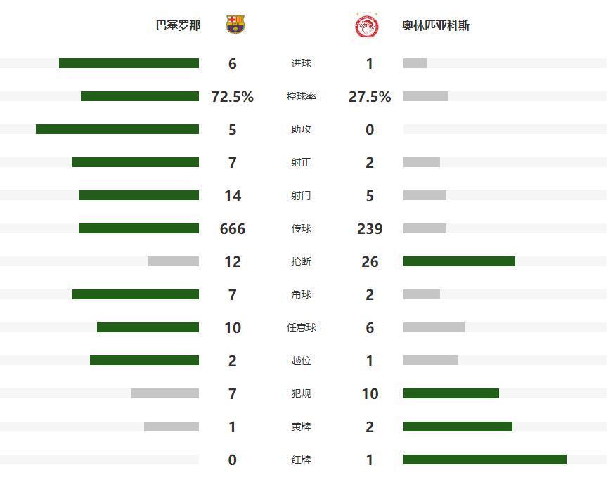 国际比赛日结束之后,巴塞罗那在西甲第九轮联赛中,靠着铁卫阿劳霍的绝杀,艰难在主场拿到胜利,止住了两连败的颓势,休整三天之后,巴塞罗那又迎来了欧冠联赛第一阶段第三轮的考验,坐镇主场迎战希腊球队奥林匹亚科斯,本场比赛巴塞罗那火力全开,靠着费尔明的帽子戏法、拉什福德的双响和亚马尔的进球,以6-1血洗了奥林匹亚科斯。