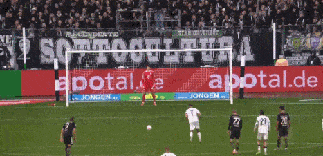 少打1人的门兴曾有机会扳回一城,第75分钟,比朔夫犯规送点,但斯托格主罚得点球,却击中立柱弹出。