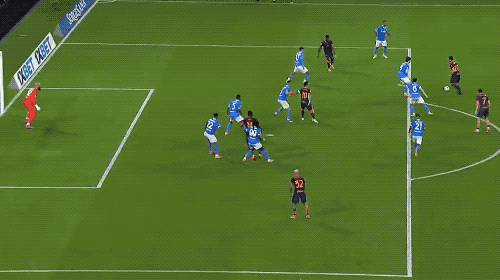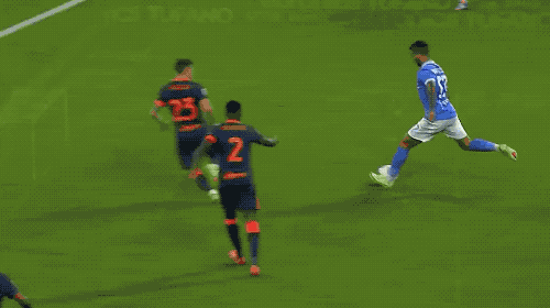 第66分钟,那不勒斯前场连续一脚传球,安古伊萨一个节奏的变化摆脱防守,斜射破门。