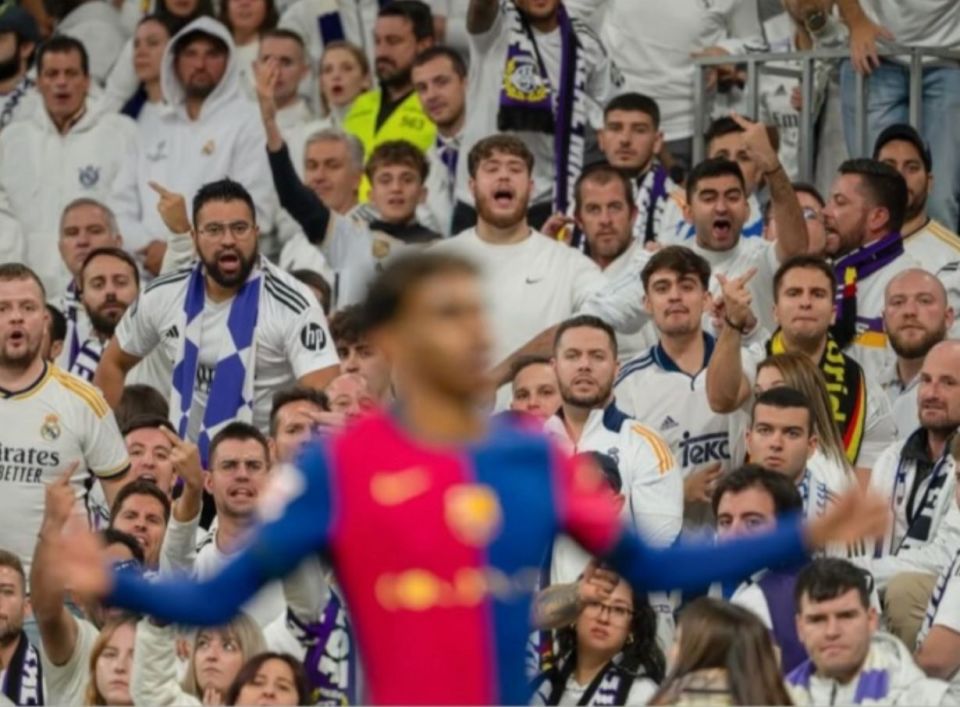 今日凌晨,亚马尔更新社媒,发了一张他去年在伯纳乌遭到皇马球迷狂嘘的图片。照片中,亚马尔摊开双手,背后是愤怒的皇马球迷。面对皇马球迷的谩骂,亚马尔毫无惧色,坦然处之。