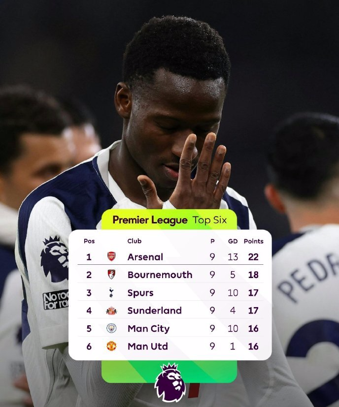 而积分榜前4名还有两支黑马球队伯恩茅斯和桑德兰,其中自从首轮2-4不敌利物浦后,伯恩茅斯已经8轮不败。本轮2-0击败森林队后,积18分的他们,也是目前积分最为接近阿森纳的球队。