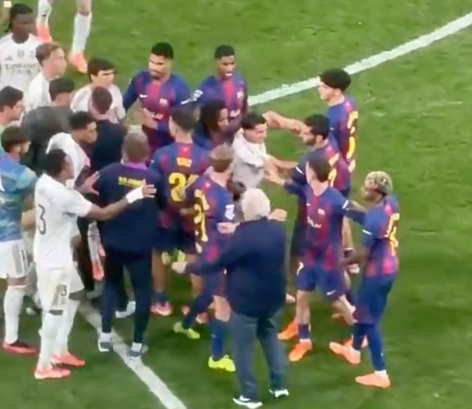 8万人面前!皇马巴萨30人冲突:33岁领袖怒批亚马尔 后者边骂边退