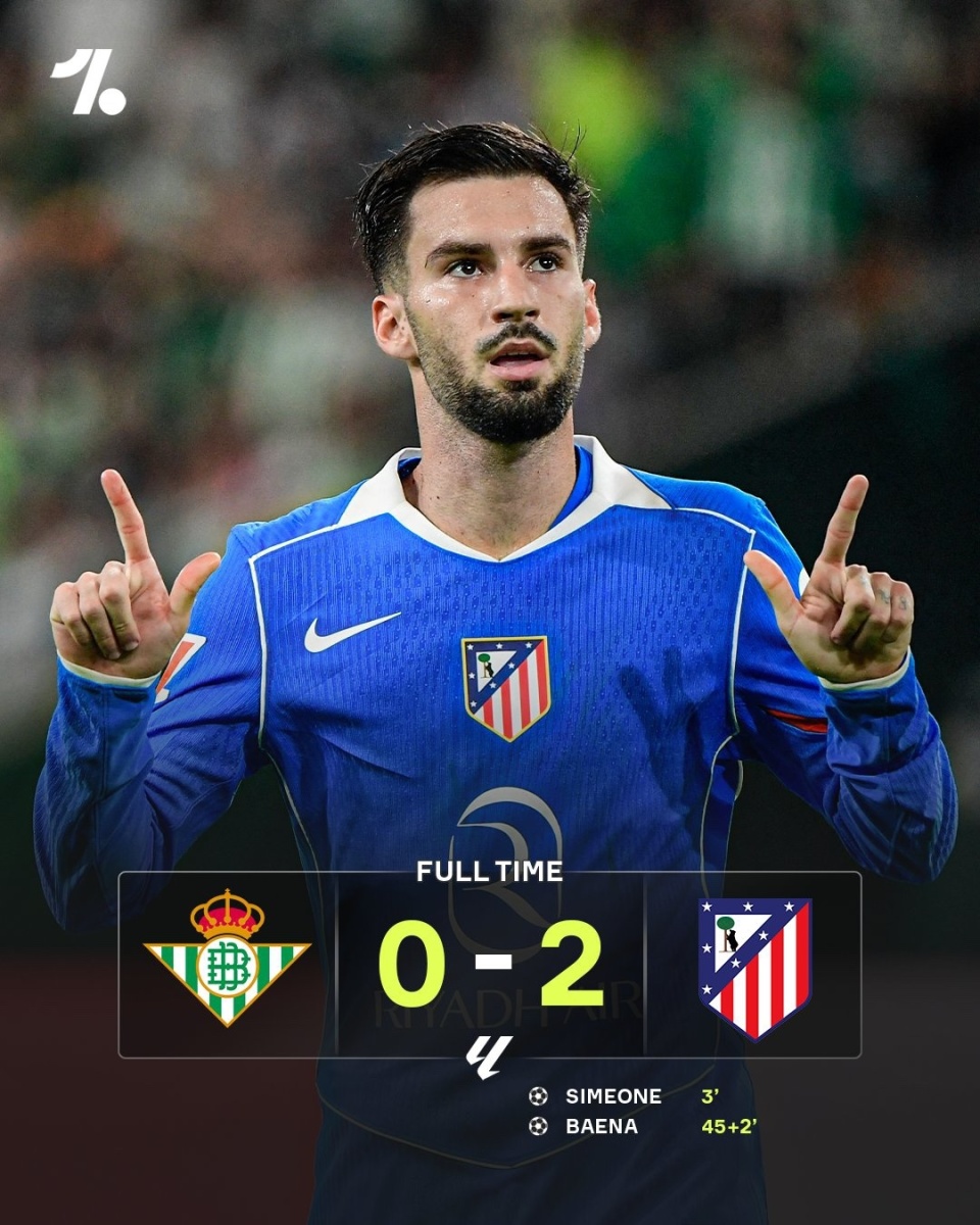 西甲第10轮,马竞客场2-0击败贝蒂斯,升至第4。小西蒙尼远射世界波先拔头筹,巴埃纳处子球,阿布德失良机+中框。
