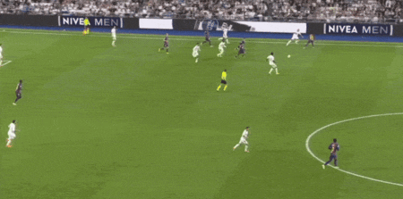 皇马的防守是另外一个极端,防守是什么,那是后卫和琼阿梅尼的事儿。当居莱尔后撤拿球被围剿时,其他皇马球员就杵在那里看,你看有人来帮忙吗?居莱尔拿球时,三名巴萨球员同时启动,虽然是替补球员,但是打法还在,战术纪律也在那。顺利地抢到之后,打出来进攻,费尔明破门。