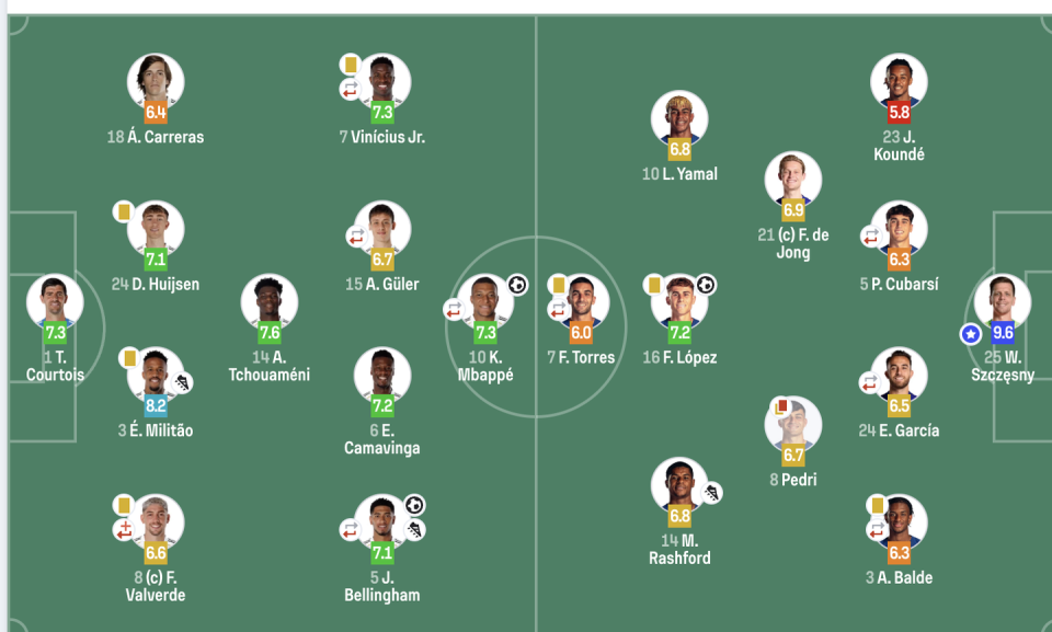 双方经历过周中的欧冠,和皇马阵容齐整相比,巴萨这边饱受伤病困扰,本来期望拉菲尼亚能够复出,而巴西边锋没有及时复出,所以巴萨只能排出来替补攻击线。看起来阵容不错,至少有个完整攻击线,实际上只要亚马尔哑火,巴萨前场就没什么戏了,毕竟费兰托雷斯水平不足以担纲中锋。