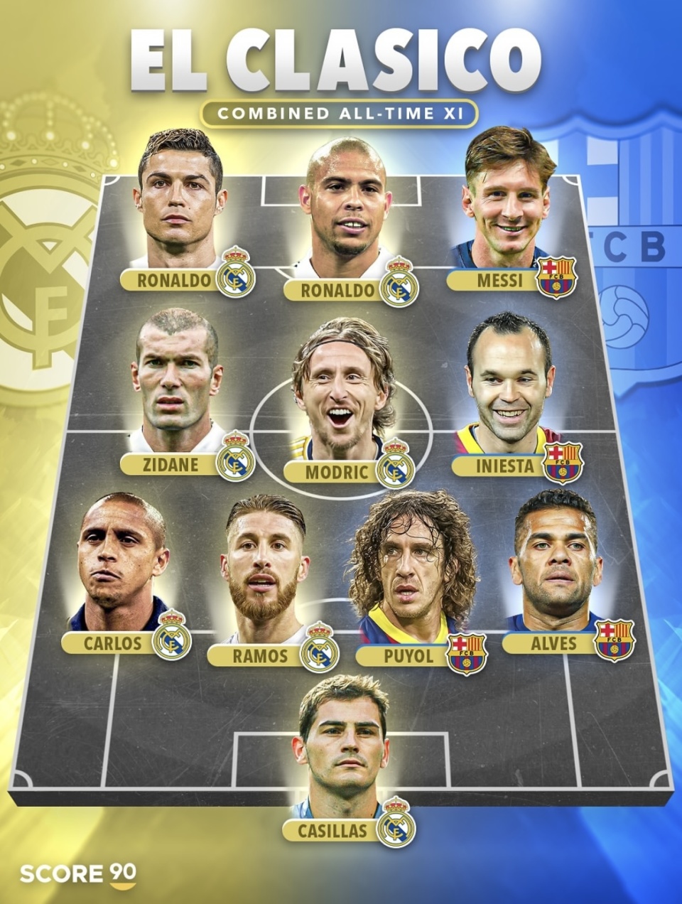 西班牙国家德比历史最强阵容发布!C罗入选 内马尔都没资格入选?