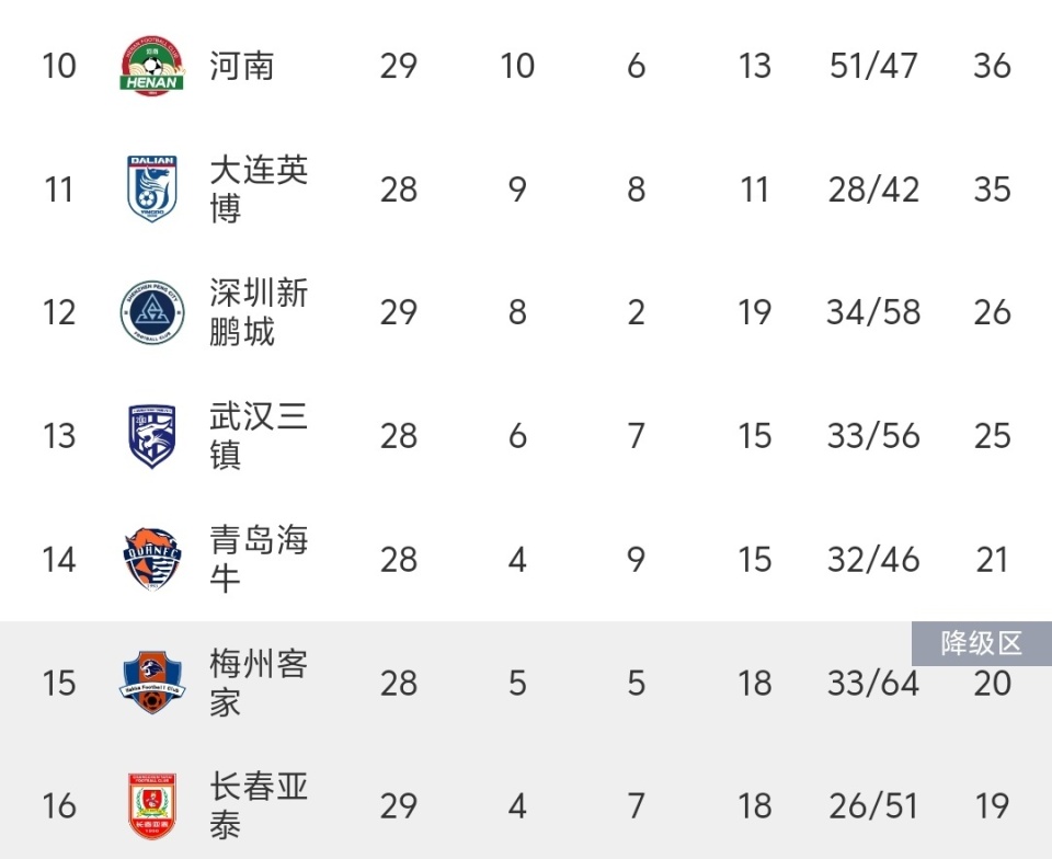 随着亚泰0-4惨败,国安不放水,中超积分榜更新:亚泰濒临降级!