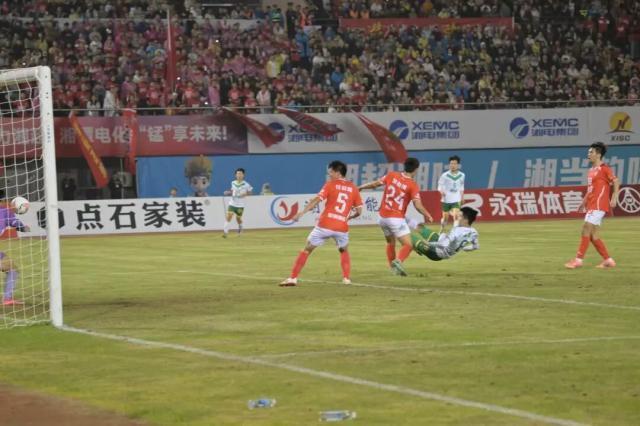 仅过了两分钟,第57分钟,长沙队谭想禁区前沿抽射破门,2比1,长沙队再度将比分超出。