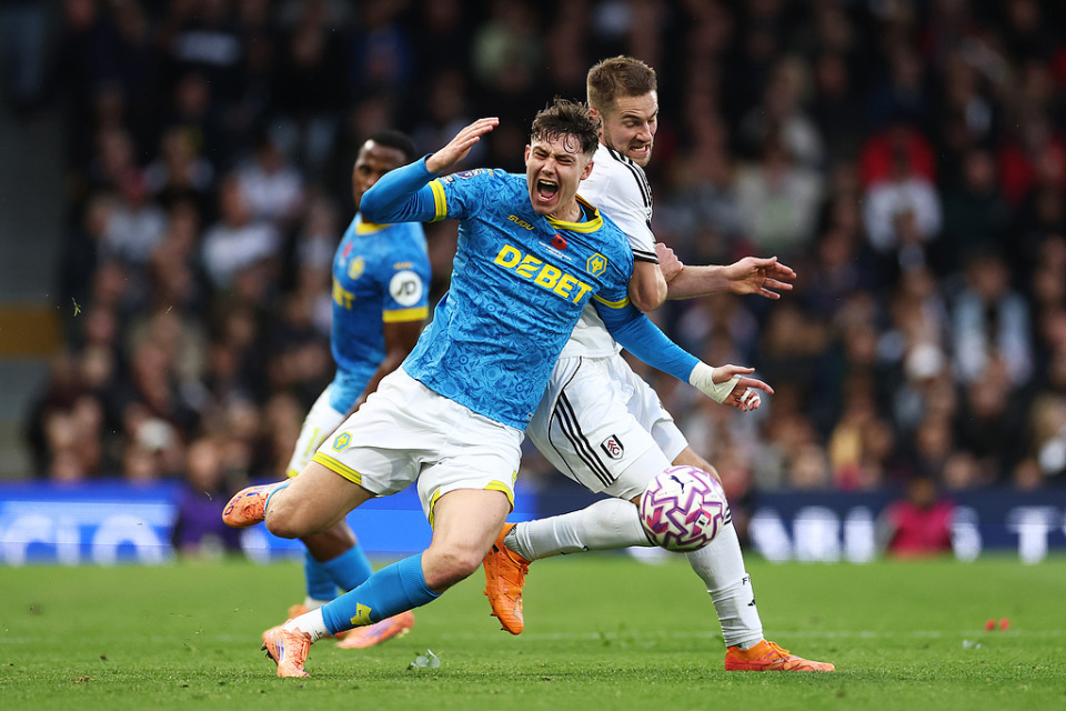 易边再战,少打1人的狼队防线漏洞百出。第62分钟,哈里-威尔逊外围大力抽射破门,帮助富勒姆将比分扩大至2-0。