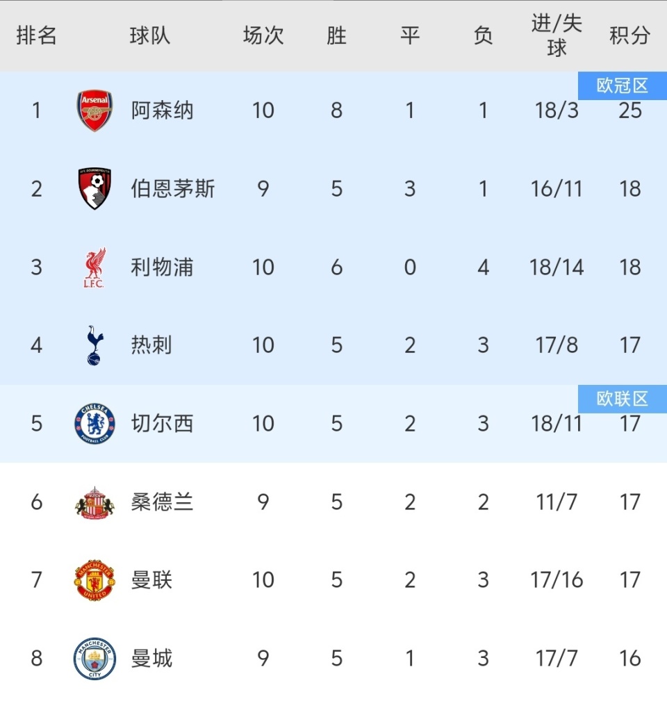 随着曼联2-2、阿森纳2-0、利物浦2-0,英超积分榜更新:曼联第7!
