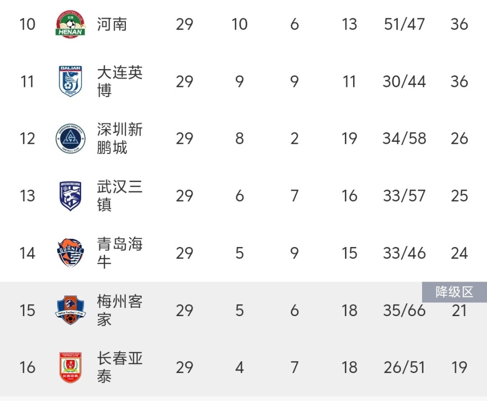 随着青岛海牛1-0小胜,保级稳了,中超最新积分榜出炉:亚泰降级!