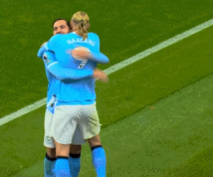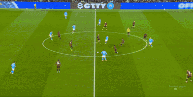 这是一次很曼城式的反击,尼科-冈萨雷斯在拿到了主控权的基础上,一记慢速过顶球给到了谢尔基,小个子的谢尔基来不及多想靠着自己的头球摆渡给到了大个子哈兰德前插的机会,这看起来很魔幻的情况却助力了魔人、拿到一大堆开阔地。