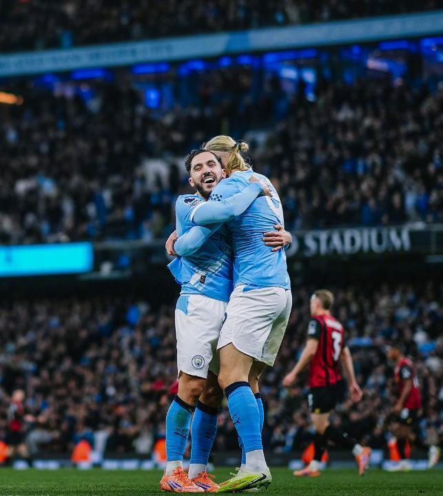 在多纳鲁马送礼伯恩茅斯扳平比分后,他们似乎还是没长记性,仅仅几分钟后曼城在中路就打出了快速的推导,哈兰德面对谢尔基挑传及队友助攻,又是一个出色的反越位直面门将,2-0。