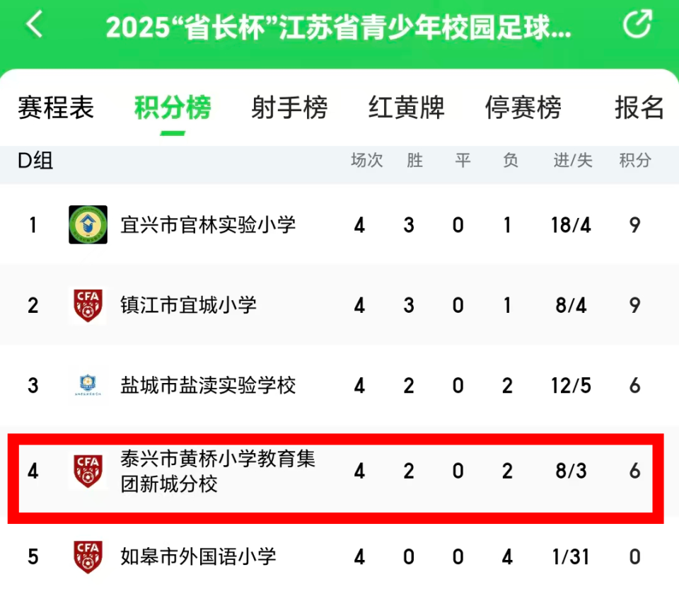 省长杯女子组比赛,泰州的学校没有参加小学甲组比赛,泰州市黄桥小学教育集团新城分校,参加了小组乙组。小组赛期间2胜2平,位居小组第4;9到16名排位赛,则是6球惨败。