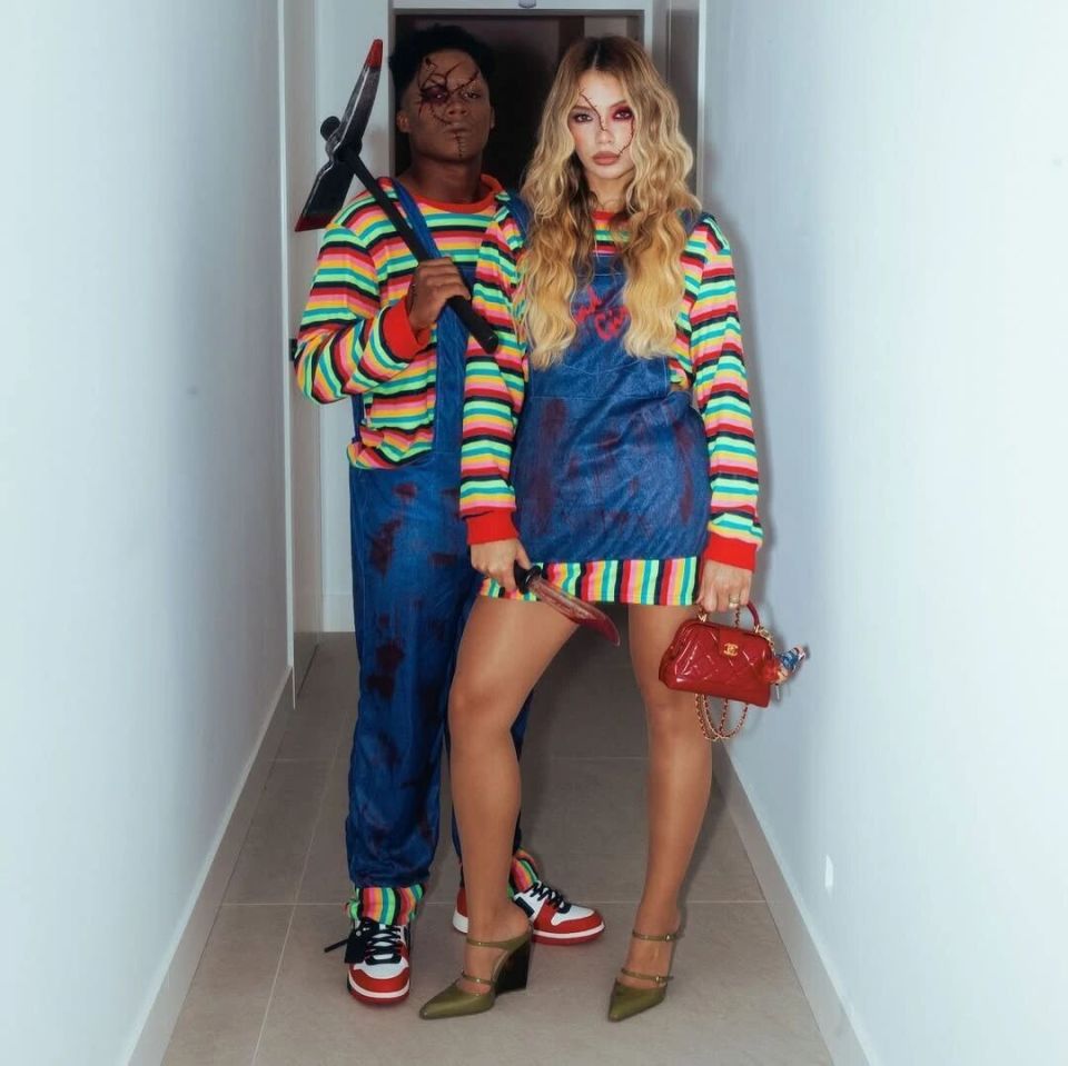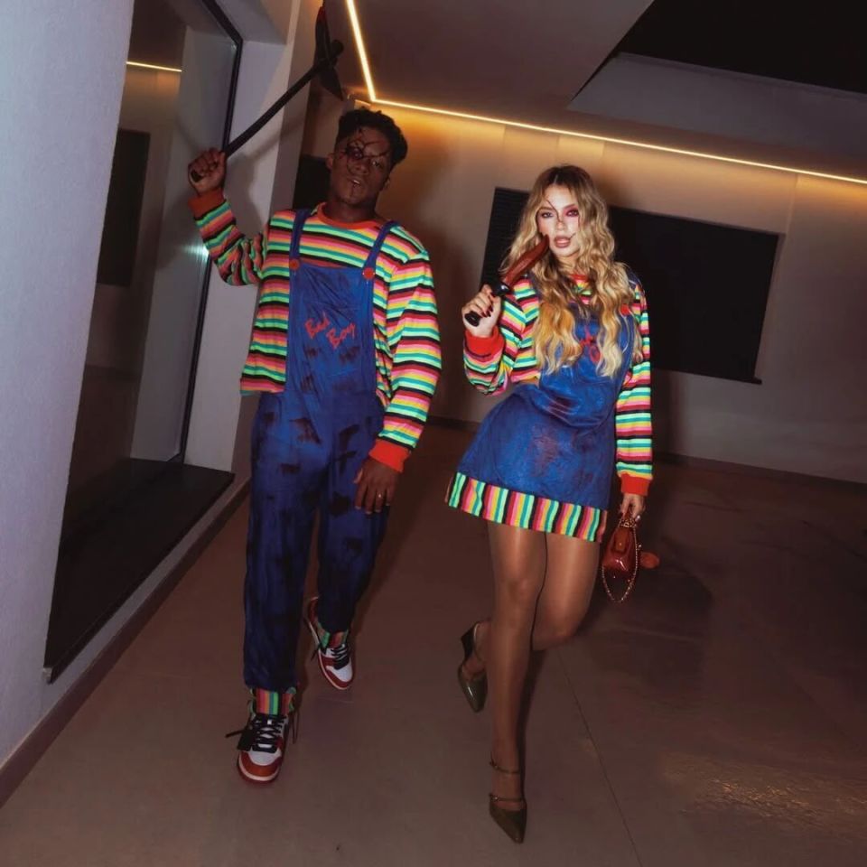 恩德里克和他的妻子加布里埃利·米兰达穿着配套的恰奇娃娃服装参加了派对,他们还搭配了一系列沾满鲜血的武器。