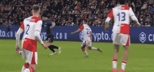 第68分钟,轮到布拉格斯拉维亚的门将出现失误了,他的出击手型都不对,赖斯传中,梅里诺背对球门,完成梅开二度。