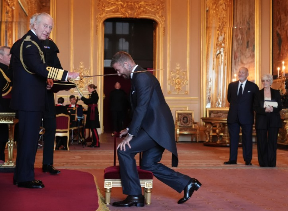 长期支持英国王室的大卫·贝克汉姆在温莎城堡获封爵士头衔。